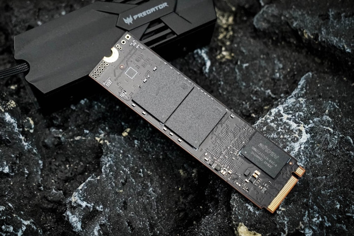 虽然现在的PCIe5.0固态硬盘基本告别“高烧”的弊病,但考虑到高负荷使用场景,掠夺者GM9000HS神舆配备了高性能主动式散热器,也是目前满血PCIe5.0固态硬盘中唯一配备主动散热散热器的产品,官方数据散热效能提升23%,为用户DIY主机提供更多选择和更强的散热保障。从正面看如同机甲一般,“PREDATOR”标识的上下两侧是进风口,内部隐藏一只小型散热风扇,支持4针PWM调速。